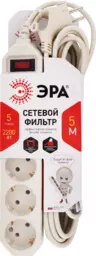Сетевой фильтр Эра 5 розеток с заземлением с выключателем, 5м