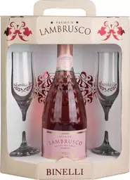 Вино игристое Binelli Premium Lambrusco Rosato Dell'emilia Amabile розовое полусладкое + 2 бокала 7.5 % алк., Италия, 0.75л