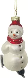 Ёлочное украшение Снеговик на коньках, стекло, 12см
