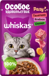 Влажный полнорационный корм Whiskas Особое удовольствие для взрослых кошек рагу,с телятиной,ягнёнком и овощами,75г