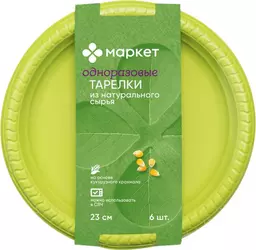 Тарелки одноразовые на основе кукурузного крахмала 23см Маркет, 6шт