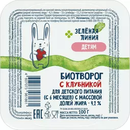 Биотворог с клубникой с 6 месяцев 4.2% Зелёная Линия, 100г