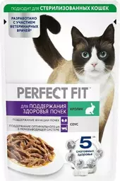 Корм Perfect Fit кролик в соусе для взрослых кошек для поддержания здоровья почек консервированный полнорационный, 75г