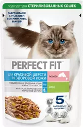 Корм Perfect Fit лосось в желе для взрослых кошек для красивой шерсти и здоровой кожи консервированный полнорационный, 75г