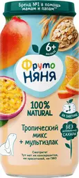 Пюре Фрутоняня яблоко-банан-манго-апельсин-маракуйя со злаками с 8 месяцев, 250г