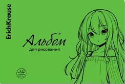 Альбом Эрих Краузе для рисования, аниме зеленый А4, 32 листа