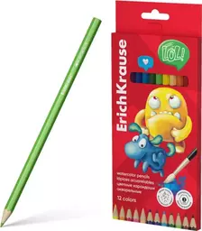 Карандаши Эрих Краузе акварельные деревянные с кисточкой 12 цветов