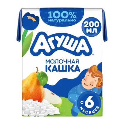 Каша Агуша Засыпай-ка молочно-рисовая с яблоком и грушей 2.7% 200мл