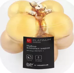 Набор елочных шаров Platinum Choice 7см, стекло, золото, Арт. 9917375-1, 8шт