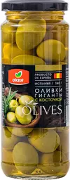 Оливки Гиганты зеленые Окей с косточкой 340г, ст/б