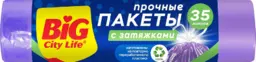 Пакеты для мусора Big City с затяжками Hd 51*52 см 35л 15 шт лиловые
