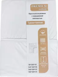 Простыня на резинке трикотажная, Premium, Белый, 90*200см, 150гр/м