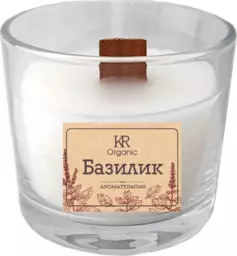 Свеча аромат. Organic из раст. воска с дерев. фитилём в подсвечнике Алания 90 мл 'Базилик'