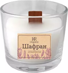 Свеча аромат. Organic из раст. воска с дерев. фитилём в подсвечнике Алания 90 мл 'Шафран'