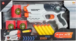 Бластер черно-белый в наборе с 5 мягкими пулями и 3 банками,