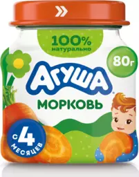 Пюре овощное Агуша морковь с 4 мес 80г ст/б
