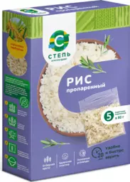 Рис пропаренный длиннозерный Агрохолдинг Степь, вар.пак, 400г