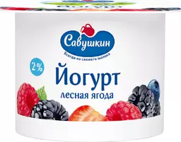 Бзмж Йогурт Савушкин лесная ягода 2% 120г стакан