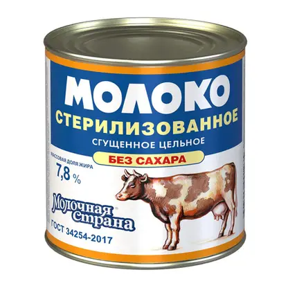 Молоко сгущенное Молочная страна стерилизованное без сахара 7.8% 300г