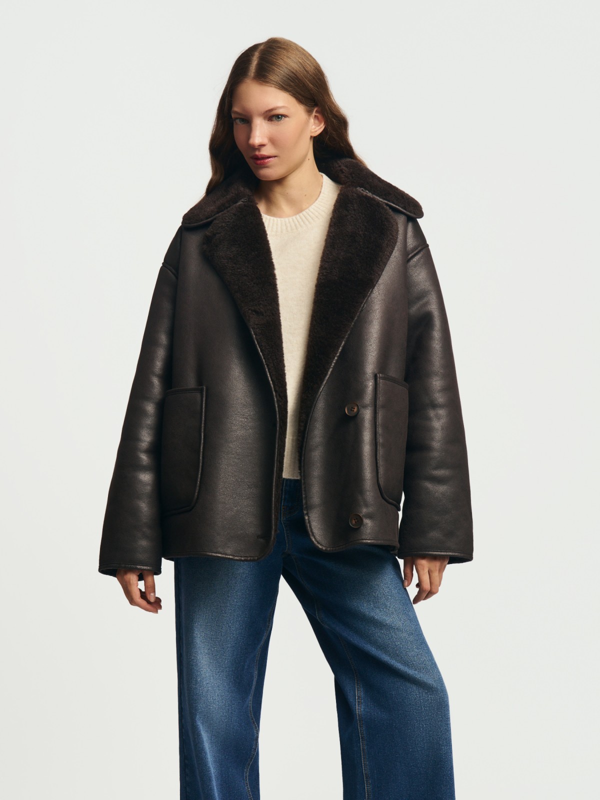 Тёплая куртка-дублёнка из экозамши с экомехом