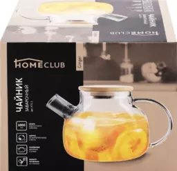 Чайник заварочный Homeclub Ginger, боросиликатное стекло, бамбук, крышка, 1л