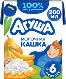 Кашка злаковая детская Агуша Засыпай-ка молочная 2.7%, с грушей и бананом, с 6 месяцев, 200мл