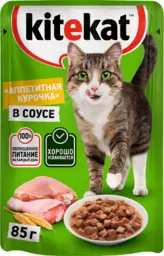 Корм консервированный для кошек Kitekat c сочными кусочками курицы в соусе, 85г