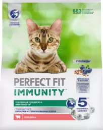 Корм сухой для взрослых кошек Perfect Fit Иммунитет с говядиной и добавлением семян льна и голубики, 1.1кг
