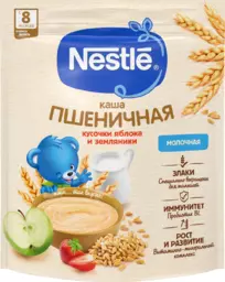 Каша пшеничная Nestle молочная, с кусочками яблока и земляникой, с 8 месяцев, 200г
