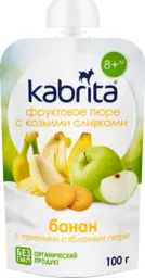 Пюре фруктовое Kabrita Банан, с печеньем, с яблочным пюре и козьими сливками, с 8 месяцев, 100г