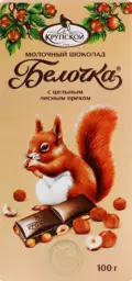 Шоколад молочный Ф.крупской Белочка с цельным фундуком, 100г