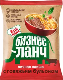 Лапша Бизнес Ланч Яичная, с говяжьим бульоном, 60г