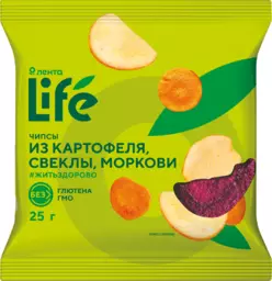 Чипсы овощные хрустящие Лента Life Картофель, свекла и морковь, 25г
