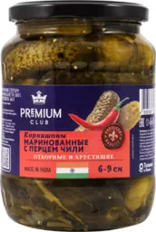 Корнишоны маринованные Premium Club с перцем чили 6–9см, 720мл