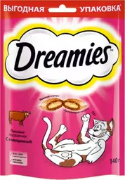 Лакомство Dreamies для кошек подушечки с говядиной, 140г