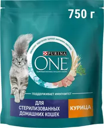 Сухой корм Purina One для стерилизованных домашних кошек с курицей, 750г