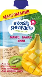 Пюре Когда Я Вырасту яблоко-манго-банан-киви гомогенизированное с 8 месяцев, 180г