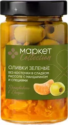 Оливки зелёные без косточки в сладком рассоле с мандарином и специями Market Collection, 320г