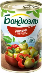 Оливки Бондюэль Мансанилья со сладким перцем, 300г
