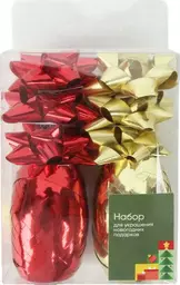 Набор для украшения новогодних подарков 6 бантов 2 мотка лент Маркет