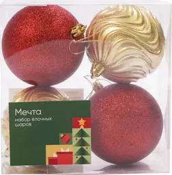 Набор шаров ёлочных Мечта 8см Маркет, 4шт