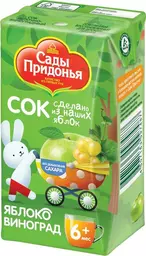 Сок Сады Придонья яблочно-виноградный восстановленный осветлённый, 125мл