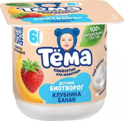 Биотворог Тёма с клубникой и бананом с 6 месяцев 4% 95г
