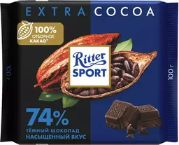 Шоколад тёмный Ritter Sport Extra Cocoa 74%, 100г