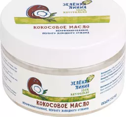Масло кокосовое нерафинированное первого холодного отжима Зелёная Линия, 250мл