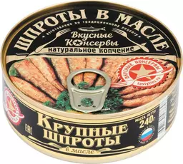 Шпроты Вкусные Консервы крупные в масле, 240г