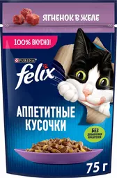 Корм влажный Felix Ягненок в желе для взрослых кошек 75г