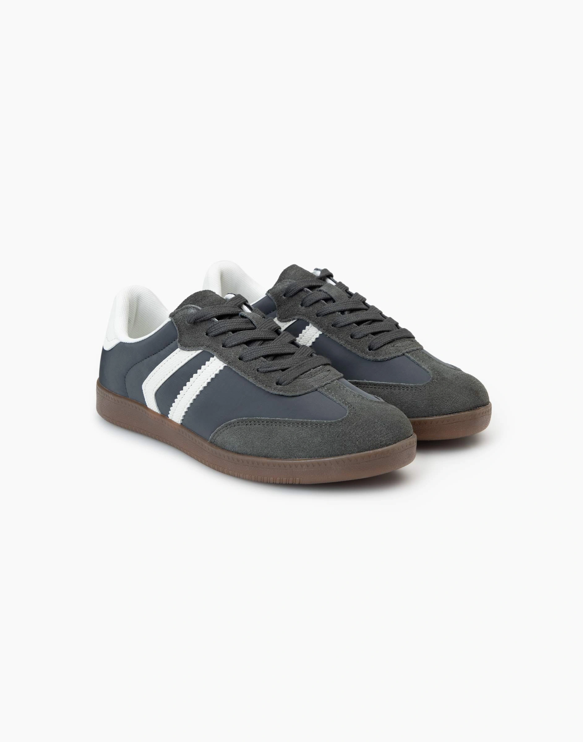 Тёмно-серые кеды из комбинированной кожи и текстиля Gfw003580-1