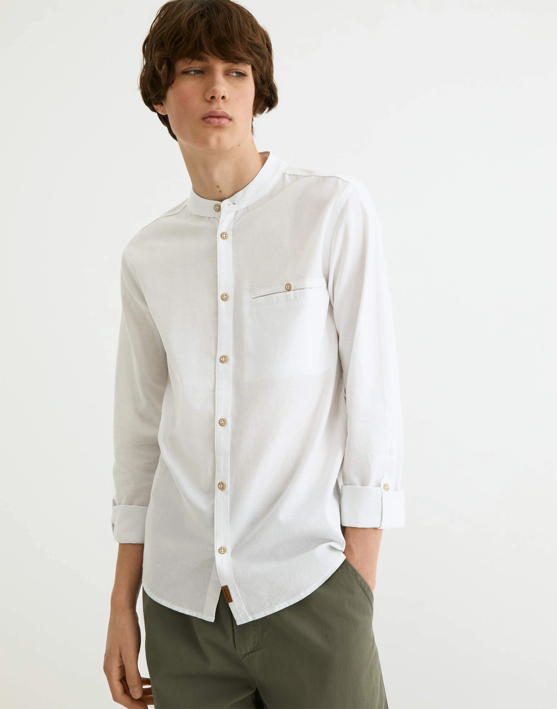 Белая рубашка oversize с воротником мао Bwt002001-1