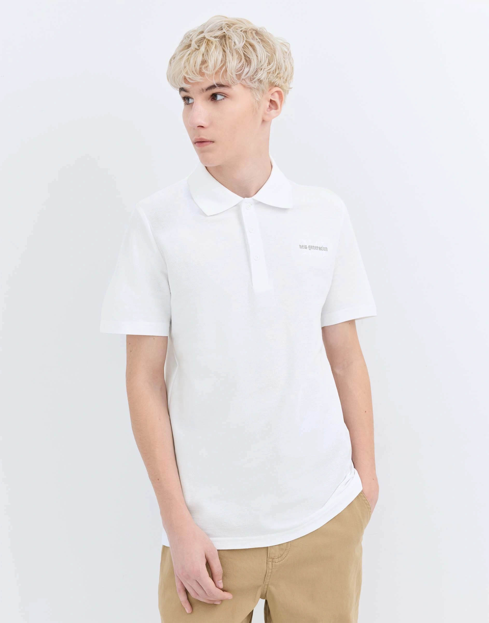 Белая свободная футболка-поло с вышивкой Bkt016175-2